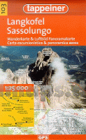 103 Langkofel 1:25.000 Wanderkarte und Lufbild Panoramakarte [Sassolungo - Carta escursionistica & panoramica aerea] Tappeiner