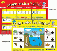 Die fünf Lern- und Spieltafeln für Kindergarten/Vorschule führen die Kinder spielerisch in die Welt der Mengen und Zahlen. Die Kinder können die vorgegebenen Zahlen zuerst mit dem Stift nachfahren, wobei die Pfeile die richtige Schreibweise anzeigen, um danach in den freien Kästchen die Zahlen selbst zu üben. Aufgrund der "wisch und weg" Methode sind die Tafeln immer wieder verwendbar. Bei allen Vorschultafeln: a) Vorderseite: Interaktive Übungen, b) Rückseite: Üben und Schreiben der Zahlen. Als Zauberstift kann jeder handelsübliche abwaschbare Filzstift verwendet werden.
