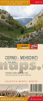 Topographische Wanderkarte für das Cernei Gebirge sowie das Mehedinti Gebirge mit Detailkarte für das Gebiet um Baile Herculane im Nationalpark Domogled-Valea Cernei im Maßstab 1:25.000. Die Landkarte enthält Tourenbeschreibungen (auch auf englisch), Höhenprofile, touristische Informationen sowie Fotos. Blattschnitt der Kartenserie