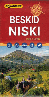 Doppelseitige Wanderkarte über die Niederen Beskiden (Beskid Niski) - GPS-tauglich mit UTM-Gitter. Höhenlinien im 10 m-Abstand. Eingezeichnete Wanderwege mit Kilometerangaben.
