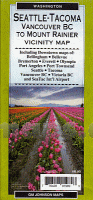Doppelseitig bedruckte Landkarte von Seattle, Tacoma und der Umgebung. Die Karte reicht bis hoch nach Vancouver in British Columbia. Die karte enthält zusätzliche Kartenausschnitte von: Victoria ca. 1:25.000, Vancouver ca. 1:20.000, Seattle-Tacoma International Airport ca. 1:31.000, Bellingham ca. 1:28.000, Seattle ca. 1:21.000, Everett ca. 1:27.000, Bellevue ca. 1:27.000, Port Angeles ca. 1:32.000, Port Townsend ca. 1:32.000, Tacoma ca. 1:27.000, Bremerton ca. 1:35.000 und Olympia ca. 1:31.000