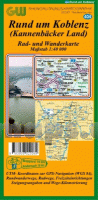 Die Rad- und Wanderkarte "Rund um Koblenz" erstreckt sich vom Neuwieder Becken zum Kannenbäcker Land. Südlich von Koblenz findet man ein Teil des Unteren Lahntals von Lahnstein bis Nassau, einschließlich des Naturparks Nassau, sowie südwestlich einen Teil des Unteren Moseltals bis Kobern-Gondorf.