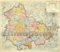 Historische Karte: LAND THÜRINGEN 1951 (Plano) Die Karte zeigt die Kreise von 1950 sowie die geplanten neuen Kreise von 1952