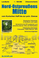 Zweisprachige Landkarte in unübertroffenem Detailreichtum. Die aktuelle Karte ´Nord-Ostpreußens Mitte´ zeigt den Bereich zwischen Königsberg / Kaliningrad im Westen, Labiau / Polessk im Norden, Insterburg / Tschernjachowsk im Osten und der heutigen polnischen Grenze im Süden. Darin enthalten ist auch das Umfeld der Städte Tapiau / Gwardejsk, Wehlau / Snamensk, Labiau / Polessk, Pr. Eylau / Bagrationowsk, Friedland / Prawdinsk, Gerdauen / Shelesnodoroshnyj und Nordenburg / Krylowo. Die Karte zeigt somit fast den ganzen Verlauf des Pregels zwischen seiner Entstehung als Zusammenfluss von Inster und Angerapp und der Stadt Königsberg nebst der Deime als in das Kurische Haff mündender Pregelarm. Südlich daran schließen sich solche Naturschönheiten wie das Waldgebiet des Frischings, das Zehlau-Bruch, das Hügelland am Unterlauf der Alle (Lawa) oder die Wälder zwischen Nordenburg und Darkehmen an. Die Karte zeigt auch, wie die von Stalin gezogene Grenze nicht nur die Kreise Pr. Eylau, Bartenstein, und Gerdauen sondern ganze Ortschaften wie Nordenburg oder Schönbruch durchschneidet. Die Karte enthält ALLE in diesem Gebiet vor 1945 vorhandenen Orte und Wohnplätze (darunter zahlreiche Förstereien mit eigenem Wohnplatzstatus), die jeweils mit ihrem historischen Namen, dem ggf. in den Dreißigerjahren germanisierten Namen (z.B. wurde 1938 ´Rudlacken´ zu ´Eichenwalde´) und - wenn heute noch vorhanden - mit den aktuellen Namen in kyrillischer Schrift und lateinischer Umschrift bezeichnet werden. Von den hier einst vorhandenen ca. 1700 Orten und Wohnplätzen sind heute nur noch ca. 700 existent - darunter allerdings auch viele in denen kaum noch Vorkriegsbebauung zu finden ist. Außerdem enthält die Karte Hinweise auf besondere Sehenswürdigkeiten wie z. B. die Ordensburg- Ruinen in Insterburg, Waldau oder Saalau, die wenigen erhaltenen Guts- und Herrenhäuser - wie z.B. in Gr. Wohnsdorf, das heute klangvoll "Kurortnoje" heißt und die Schleusen des in der Vorkriegszeit erbauten und unvollendet gebliebenen Masurischen Kanals. Zur besseren Orientierung sind neben den Straßen und nur zum Teil befahrbaren Wegen noch die aktuellen aber auch die stillgelegten Eisenbahnstrecken und die Kreisgrenzen von 1937 dargestellt. Blattschnitte Kaliningrader Gebiet / Ermland und Masuren (ehem. Ostpreußen) Blattschnitte Schlesien und Neumark Blattschnitte Neumark und Ostbrandenburg Blattschnitte Ostseeküste