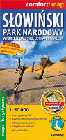 Touristische Wanderkarte für den Slowinzischen Nationalpark an der polnischen Ostseeküste mit Wanderwegen und Fahrradrouten. Die Landkarte enthält Stadtpläne von Ustka (Stolpmünde) und Leba und ist GPS-kompatibel (WGS-84).