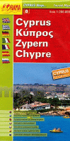 Touristische Straßenkarte von Zypern mit touristischen Kurzinformationen auch in deutscher Sprache. Mit kleinem Innenstadtplan von Nikosia / Lefcosa Lefkosía Λευκωσία, Lefkoşa.