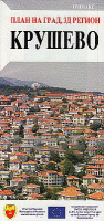 Stadtplan von Krusevo 1:3000 und Landkarte der Gemeinde Krusevo (Opstina Kruševo) in Mazedonien. Enthält touristische Kurzinformation (mazedonisch / englisch)