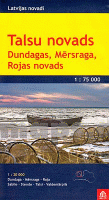 Detaillierte Kreiskarte. Mit Stadtplänen von Dundaga, Mersrags, Roja, Sabile, Stende, Talsi und Valdemarpils