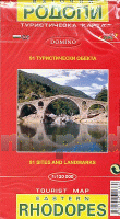 Rhodopen (östlicher Teil) touristische Landkarte mit Grundriss der archäologischen Stätte Perperikon 1:120.000 - zweisprachige Legende (bulg./engl.) Istotschni Rodopi - Eastern Rhodopes - Turistitscheskaja Karta Domino Bulgarien