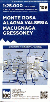 109 Monte Rosa - Alagna Valsesia - Macugnaga - Gressoney (mit Skiwanderouten) - Topographische Wanderkarte 1:25.000 - IGC Italien