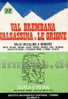 22 Val Brembana - Valsassina e Le Grigne (dalla Valtellina a Bergamo) - Topographische Wanderkarte 1:50.000 - IGC Italien
