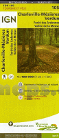 105 Charleville-Mézieres - Verdun Topographische Touristische Landkarte Tourismus und Fahrrad (wasserfest) - tourisme et vélo plastifiée TOP100 - 1:100.000 - IGN Frankreich
