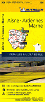 Aisne - Ardennes - Marne Straßenkarte 1:150.000 Frankreich (Blatt 306) Michelin Départements