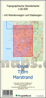 Hochwertige topographische Wanderkarte rund um die Insel Orust in Schweden. Die Karte zeigt auch die Inseln Marstrand und Tjörn.
