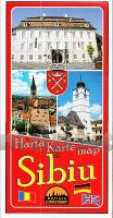 Stadtplan von Sibiu (Hermannstadt) in Rumänien mit Straßenverzeichnis. Die Rückseite der Landkarte enthält einen Innenstadtplan mit Sehenswürdigkeiten.