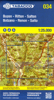 034 Bolzano - Renon / Bozen - Ritten - Tschögglberg Topographische Wanderkarte 1:25.000 - Casa Editrice Tabacco - Italien