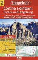 106 Cortina und Umgebung 1:25.000 Wanderkarte und Lufbild Panoramakarte Cartina escursionistica Cortina e dintorni Tappeiner