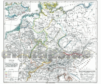 Diese feine und kolorierte Landkarte zeigt Germanien in längst vergangener Zeit. Sie wurde 1875 von dem deutschen Kartographen Dr. Karl von Spruner herausgegeben. Bearbeitet für diese Ausgabe von Harald Rockstuhl.
