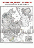 Historische Karte von DÄNEMARK, ISLAND, FAROER Inseln, 1858 - durchgesehen 1865 (Plano) Herzogtümer SCHLESWIG, HOLSTEIN & LAUENBURG. Stadtplan von KOPENHAGEN Verlag Rockstuhl