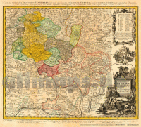 Grafschaft Henneberg und Teile des Fürstentums Coburg mit dem Gebiet Plauen, Lichtenfels/Main, Schweinfurt und Vacha. Mit der Rhön, dem Grabfeld und die Haßberge. Erschien bei Homann Erben. Kartograph Johann Jacob Zinick (1688-1743). Reprint. Außenformat (Breite x Höhe) 60 X 54 cm. Grenz-und flächenkolorierte Karte. Gerollt. Lieferung in einer sehr stabilen Pappversandhülse - bis 72 cm lang - 250 g. Unten rechts die Titelkartusche (lat. Sprache) mit dek. Staffage ( Personen, Wappen, Landschaft): "S. R. I. Comitatus Henneberg secundum Praefecturas & modernas Dynastias, una cum confini Pr: Coburgensis geographice consignatus & in hac Tabula editus" Kopftitel: "Karte der Gefürsteten Graffschaft Henneberg, mit dem angränzenden Fürstenth. Cobvrg u. anderen Graenz Laendern, nach authentischen Documenten und Nachrichten verfertigt, und in ihre Aemter eingetheilt. Herausgegeben von Homannischen Erben. Mit Kayserl. Allerg. Privil. A 1743.` Fußtitel unten nochmals in franz. Sprache: "La Carte du Comte de Henneberg avec les pais confins du Principaute de COBURG. Le tout subdivese en des Baillages et dresse Selon les memories les plus authentigues A. Nürmberg chez bis Herities de Homan. A 1743. C.P.S.C.M. Dargestellt farblich getrennt: Amt Ilmenau, Amt Hallenburg, Amt Schmalkalden, Amt Breitungen, Amt Altenstein, Amt Dermbach, Amt Nordheim, Amt Behrungen, Amt Lichtenberg, Amt Tiefenort, Amt Salzungen, Amt Altenstein, Amt Frauenbreitungen, Amt Wasungen, Amt Sandt, Amt Suhl, Amt Themar, Amt Benshausen. Amt Römhild, Amt Heldburg, Amt Königsberg, Amt Schleusingen, Amit Eisfeld Amt Schalkau, Amt Sonneberg, Amt Neuhaus, Amt Neustadt, Amt Sonnefeld, Coburg, Hildburghausen, Gera, Plauen, Arnstadt, Schweinfurt