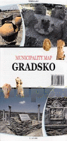 Landkarte der Gemeinde Gradsko (Opstina Gradsko) in Mazedonien - mit Ortsplan von Gradsko 1:12.000 und bebilderten touristischen Kurzinformationen (mazedonisch / englisch)