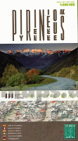 Straßen- und Übersichtskarte über die ganzen Pyrenäen im Maßstab 1:400.000 mit Wanderinformationen.