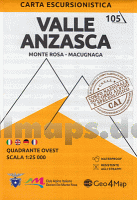 Valle Anzasca West 1:25.000 (Blatt 105) (wasserfest) Monte Rosa - Macugnaga - Topographische Wanderkarte (dt./engl./ital.), Valle Anzasca - Carta escursionistica - Quadrante ovest, Geo4 Map - Italien