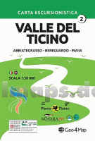 Wanderkarte vom Naturgebiet Norditaliens dem Valle del Ticino. Die Rückseite enthält touristische Informationen auf Italinisch und Englisch. Die Legende ist auch auf Deutsch.
