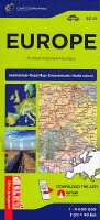 Laminierte und wetterfeste Straßenkarte von Mittel- und Südeuropa einschließlich Baltikum und Karpaten. Mit Ortsregister und Entfernungstabelle.