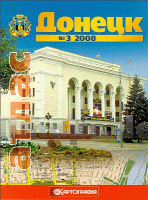 Stadt-Atlas von Donezk mit detailliertem Innenstadtteil, Straßenverzeichnis und touristischen Informationen.