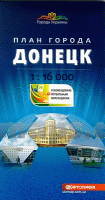 Stadtplan von Donezk mit Straßenverzeichnis, Plan des öffentlichen Transportsystems, kleiner Umgebungskarte, Plan des Fussballstadions Donbas Arena und touristischen Informationen sowie Fotos.