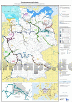Bundeswasserstraßenkarte mit klassifizierten und unklassifizierten Binnenschifffahrtsstraßen und Seeschifffahrtsstraßen (soweit Binnenwasserstraßen) mit zusätzlicher Hervorhebung der Zuständigkeiten seiten der WSA (Wasser- und Schifffahrtsämter). Mit Ausschnittsvergrößerung Berlin und Übersichtskarte Europa.