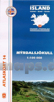 14 Myrdalsjökull Atlaskort - Topographische Landkarte Island 1:100.000, Mýrdalsjökull, Forlagid - Mál og menning - Island