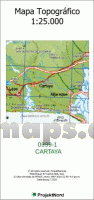Gesamtliste mit Blattübersicht (Druckausgabe CNIG) Topographische Landkarte 1:25.000 Spanien. Kartenbeispiel aus der Serie