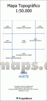 Gesamtliste mit Blattübersicht (Druckausgabe CNIG) Topographische Landkarte 1:50.000 Spanien. Kartenbeispiel aus der Serie