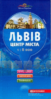 Stadtplan der erweiterten Innenstadt von Lemberg (Lwiw / Ukraine). Alle Beschriftungen auf ukrainisch / kyrillisch. Auf der Rückseite befindet sich das Straßenregister und Kurzbeschreibungen zu den Sehenswürdigkeiten - letztere auf englisch, ukrainisch, russisch und polnisch.